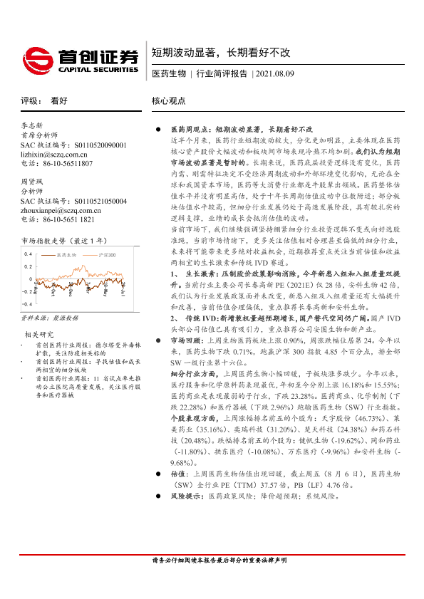 【首创证券】【20210809】医药生物行业简评报告:短期波动显著,长期看好不改-10页