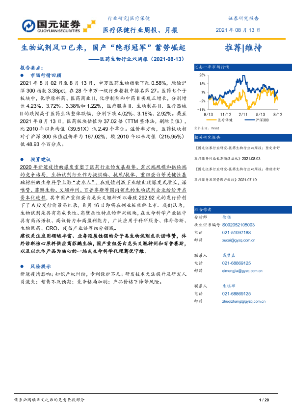【国元证券】【20210813】医药生物行业双周报:生物试剂风口已来,国产“隐形冠军”蓄势崛起-20页