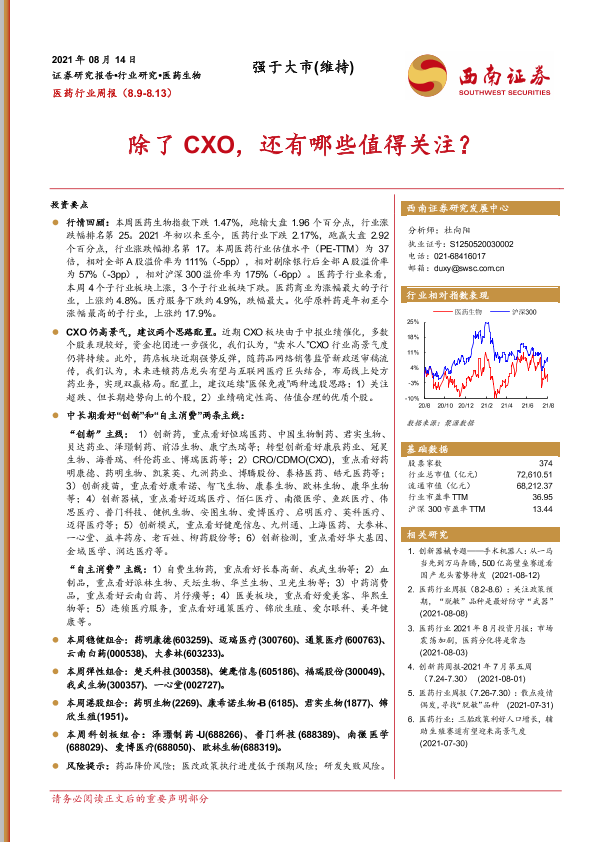 【西南证券】【20210814】医药行业周报:除了CXO,还有哪些值得关注?-36页
