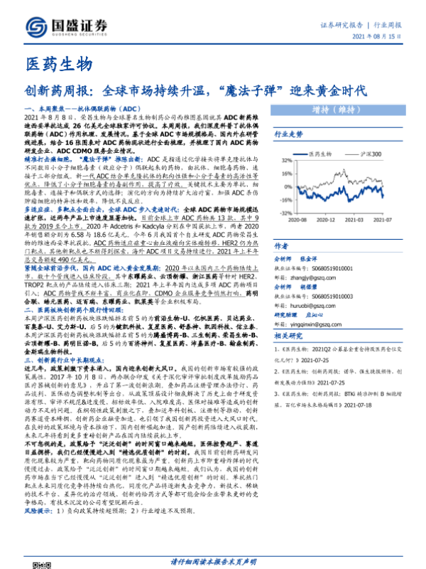 【国盛证券】【20210815】医药生物:创新药周报:全球市场持续升温,“魔法子弹”迎来黄金时代-18页