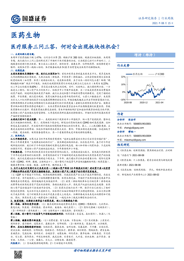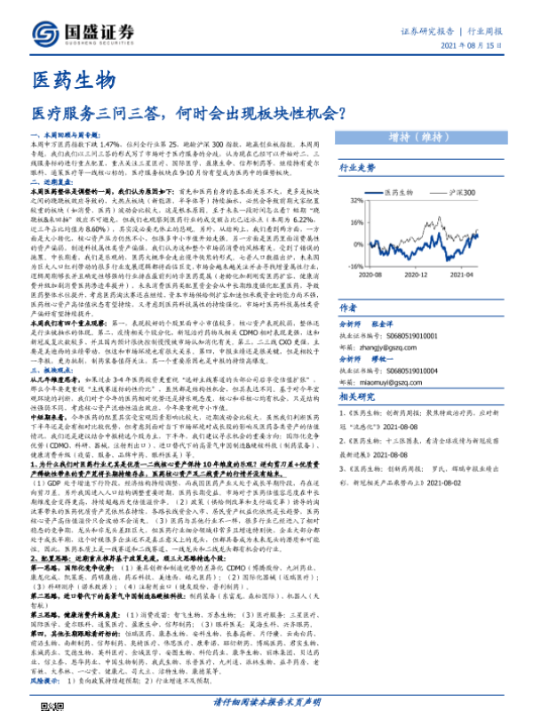 【国盛证券】【20210815】医药生物行业周报:医疗服务三问三答,何时会出现板块性机会?-22页