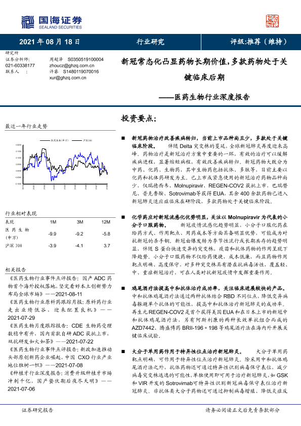 【国海证券】【20210818】医药生物行业深度报告:新冠常态化凸显药物长期价值,多款药物处于关键临床后期-20页