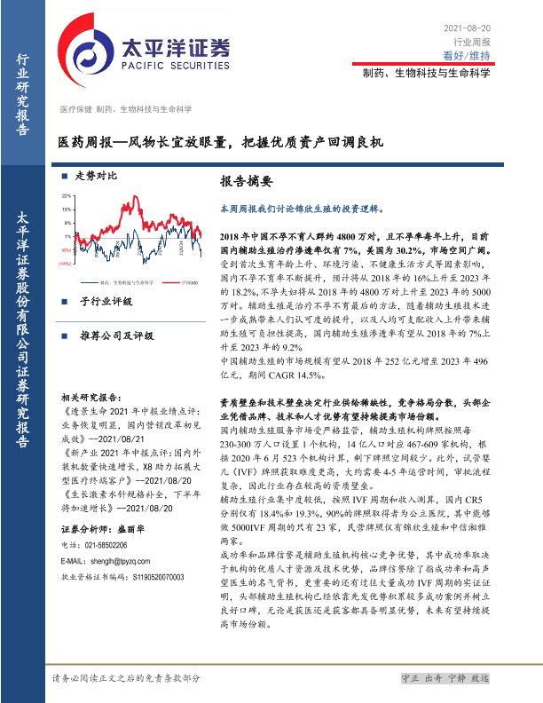 医药周报 市场分析 投资建议 辅助生殖 锦欣生殖