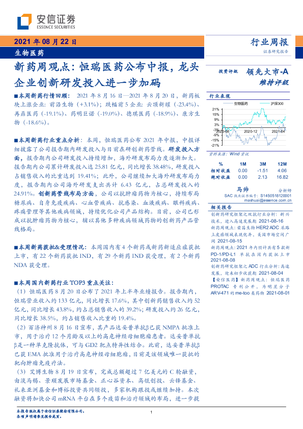 【安信证券】【20210822】新药周观点:恒瑞医药公布中报,龙头企业创新研发投入进一步加码-16页