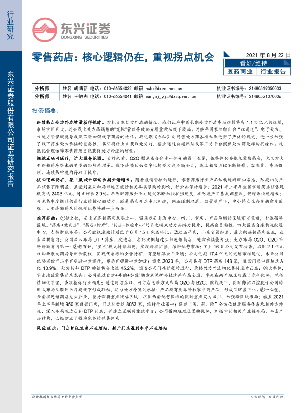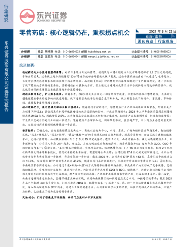 【东兴证券】【20210822】零售药店:核心逻辑仍在,重视拐点机会-11页