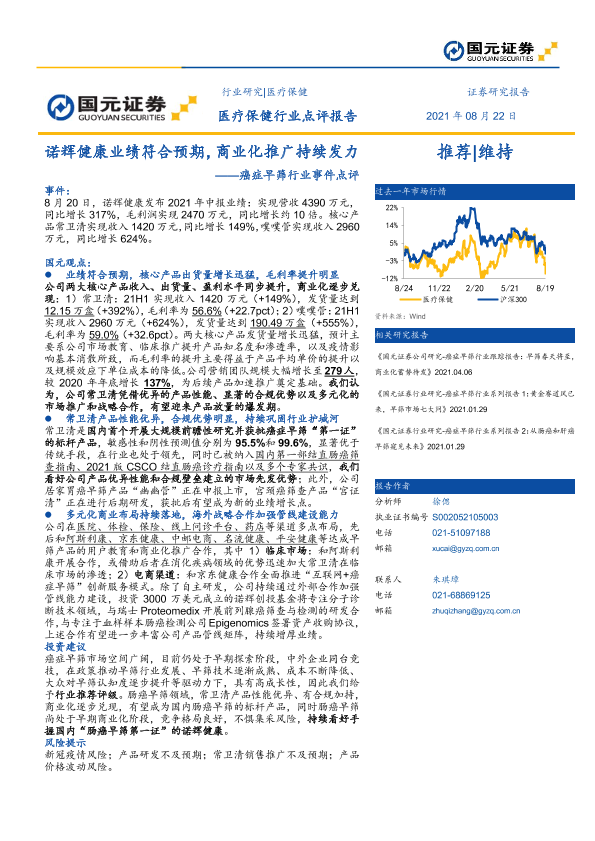 【国元证券】【20210822】癌症早筛行业事件点评:诺辉健康业绩符合预期,商业化推广持续发力-2页