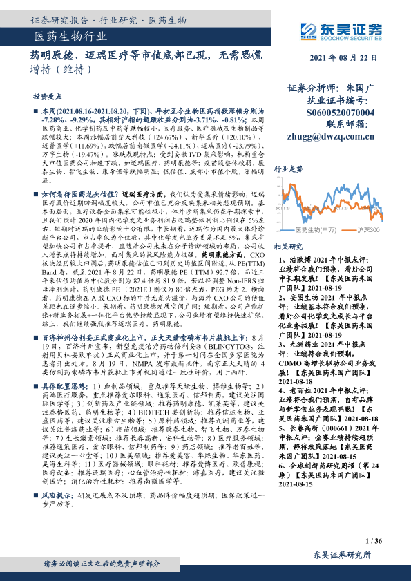 【东吴证券】【20210822】医药生物行业:药明康德、迈瑞医疗等市值底部已现,无需恐慌-36页