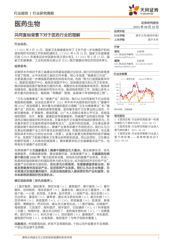 【天风证券】【20210822】医药生物行业研究周报:共同富裕背景下对于医药行业的理解-4页