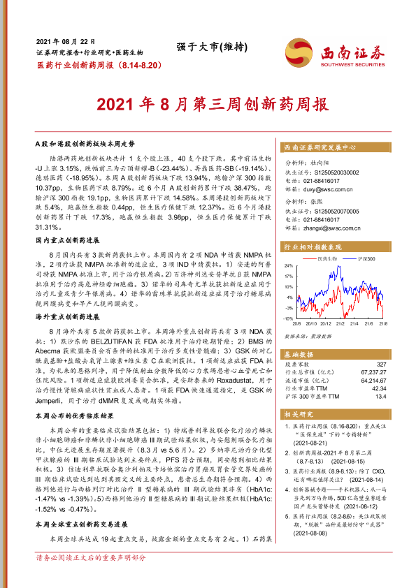 【西南证券】【20210823】2021年8月第三周创新药周报-20页