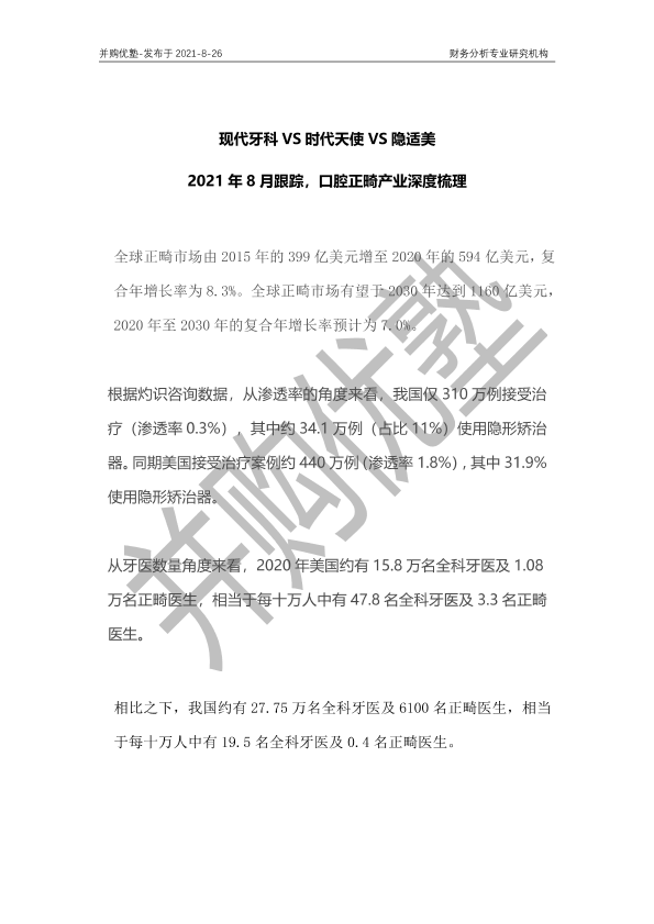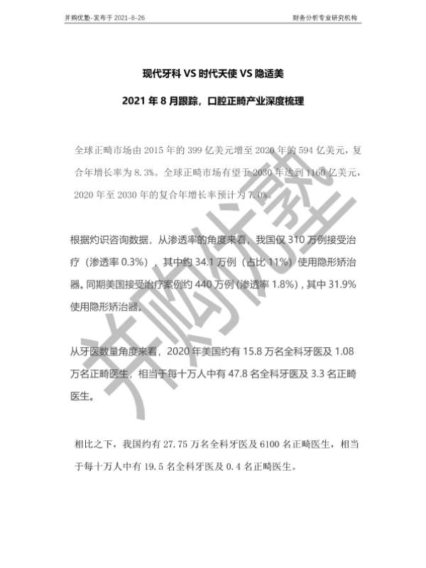 【并购优塾】【20210826】现代牙科VS时代天使VS隐适美:口腔正畸产业深度梳理-20页