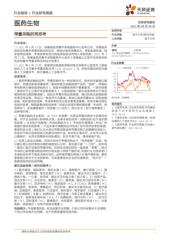 【天风证券】【20210829】医药生物行业研究周报:带量采购的再思考-4页