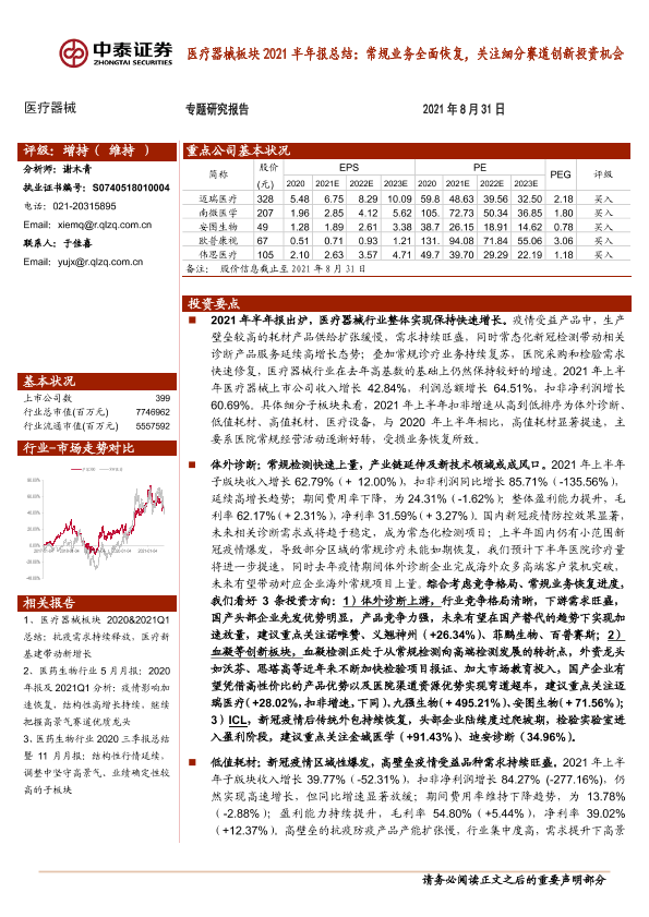 【中泰证券】【20210831】2021半年报总结:常规业务全面恢复,关注细分赛道创新投资机会-13页
