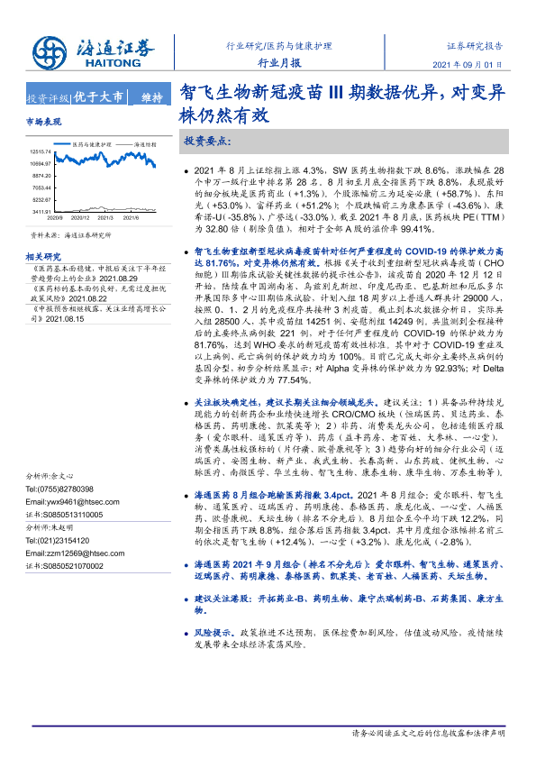 【海通证券】【20210901】智飞生物新冠疫苗III期数据优异,对变异株仍然有效-5页