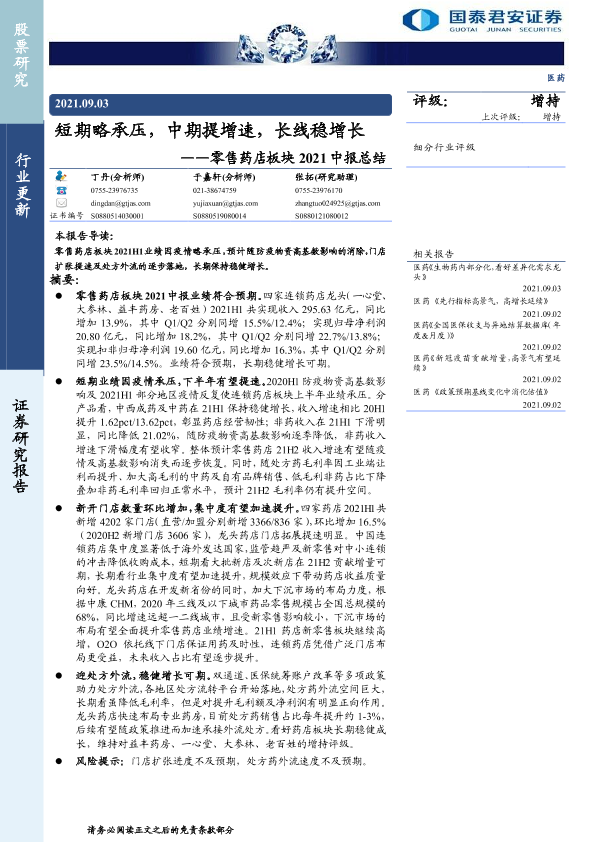 【国泰君安证券】【20210903】零售药店板块2021中报总结:短期略承压,中期提增速,长线稳增长-3页