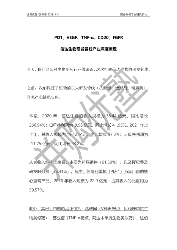 【并购优塾】【20210903】PD1、VEGF、TNF-α、CD20、FGFR信达生物研发管线产业深度梳理-24页