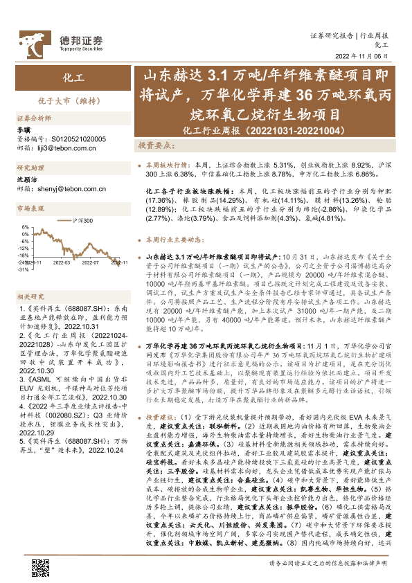 【德邦证券】【20221106】化工行业周报:山东赫达3.1万吨年纤维素醚项目即将试产,万华化学再建36万吨环氧丙烷环氧乙烷衍生物项目-25页