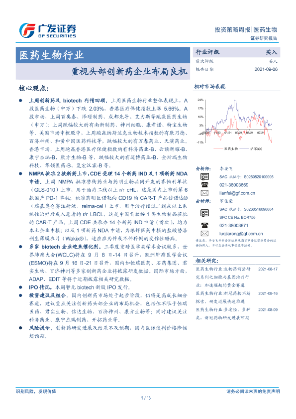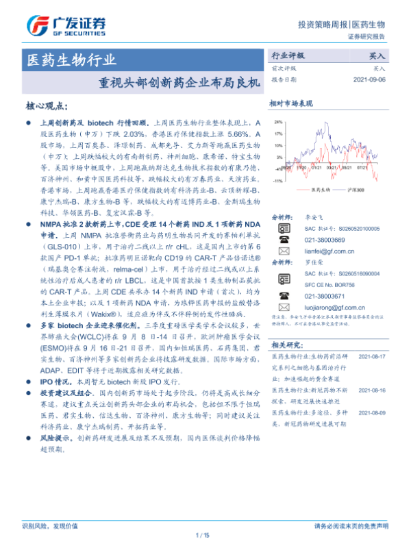 【广发证券】【20210906】医药生物行业:重视头部创新药企业布局良机-15页
