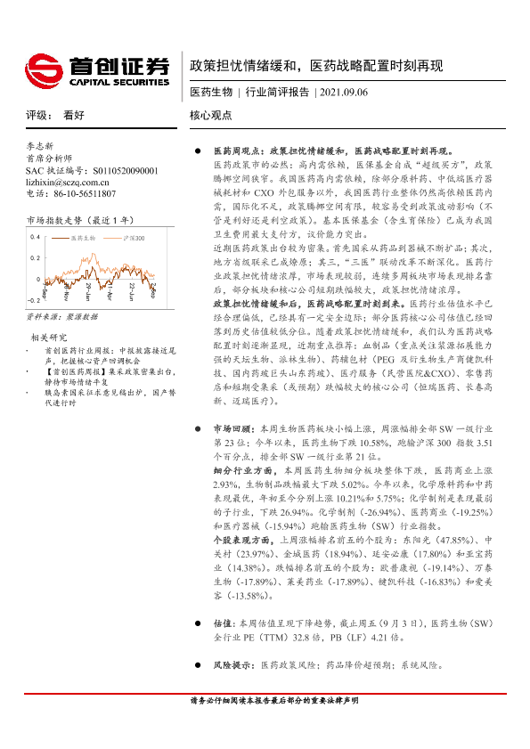 【首创证券】【20210906】医药生物行业简评报告:政策担忧情绪缓和,医药战略配置时刻再现-12页