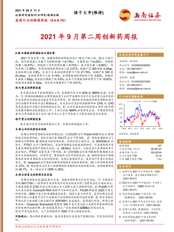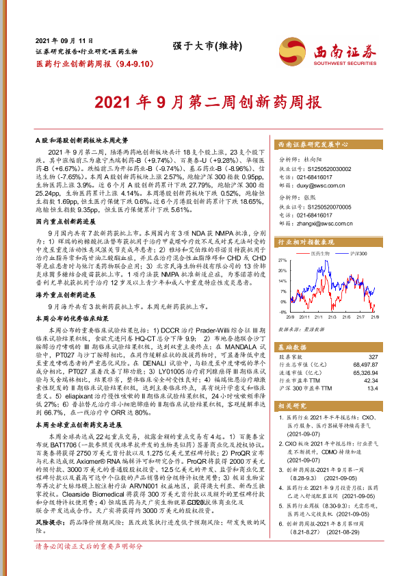 【西南证券】【20210911】2021年9月第二周创新药周报-18页