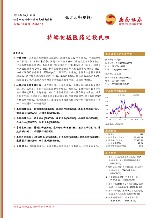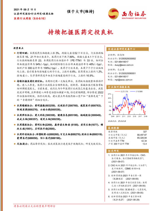 【西南证券】【20210911】医药行业周报:持续把握医药定投良机-37页