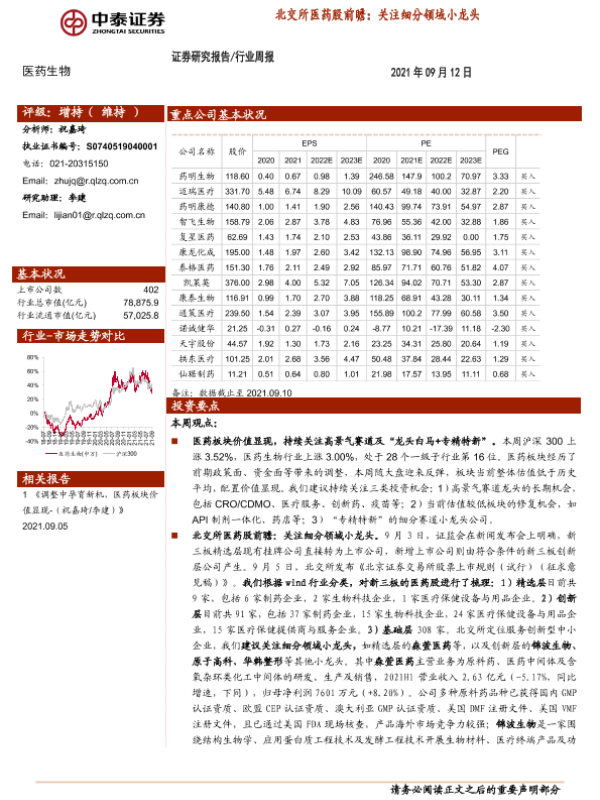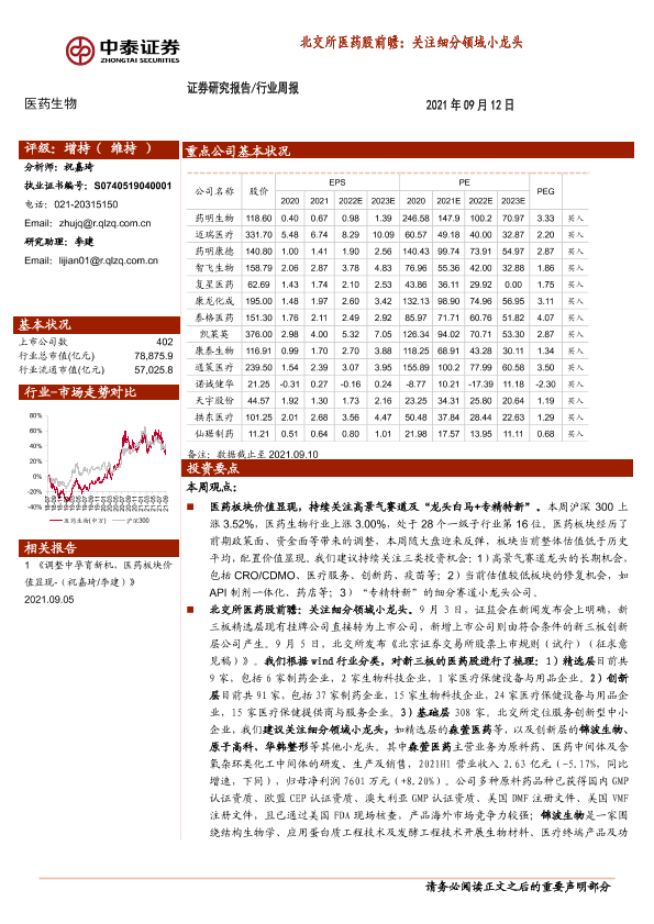 【中泰证券】【20210912】医药生物行业周报:北交所医药股前瞻:关注细分领域小龙头-12页