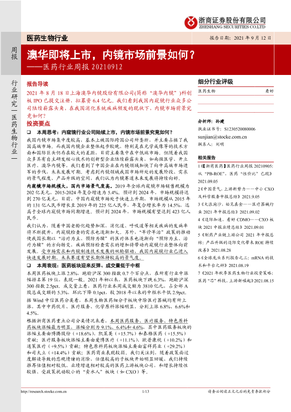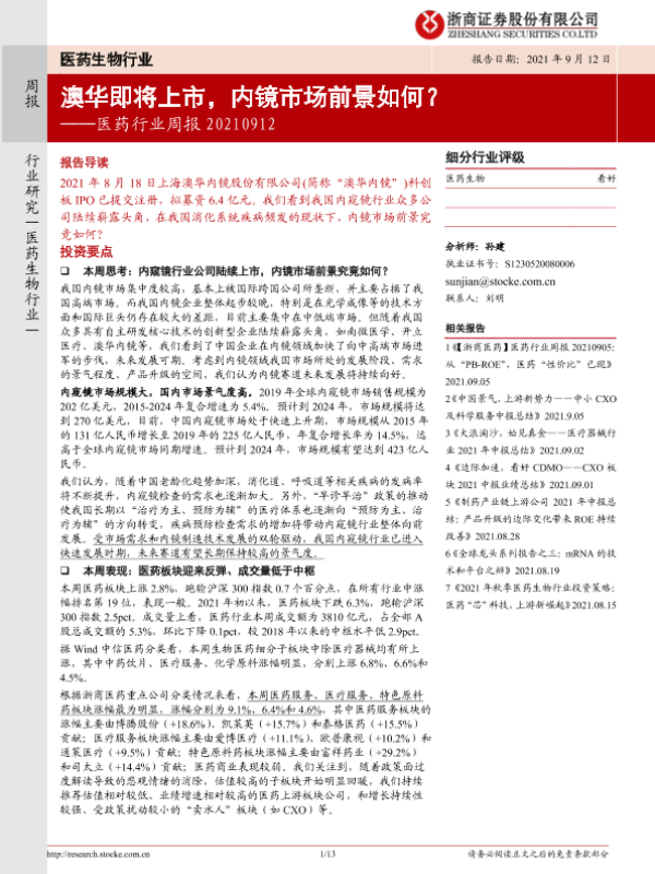 【浙商证券】【20210912】澳华即将上市,内镜市场前景如何?-13页