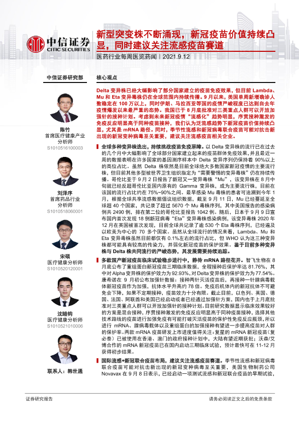 【中信证券】【20210912】医药行业每周医览药闻:新型突变株不断涌现,新冠疫苗价值持续凸显,同时建议关注流感疫苗赛道-22页