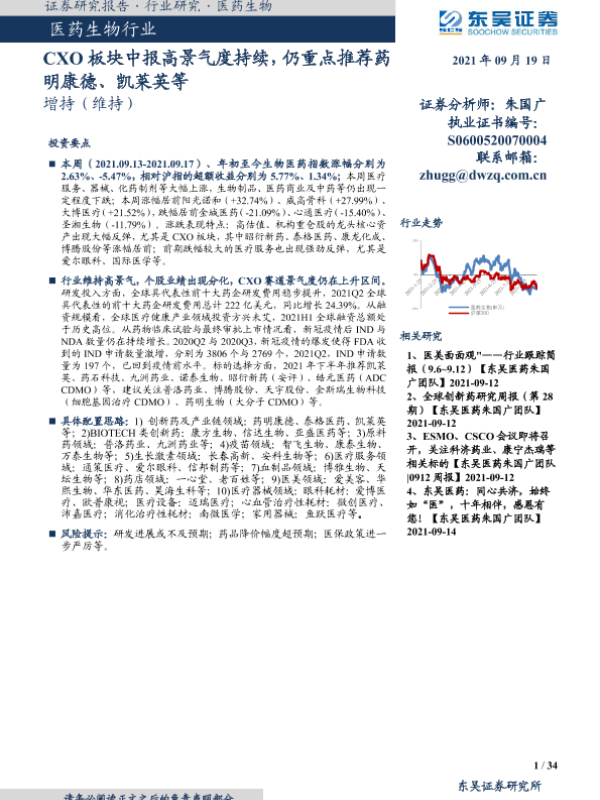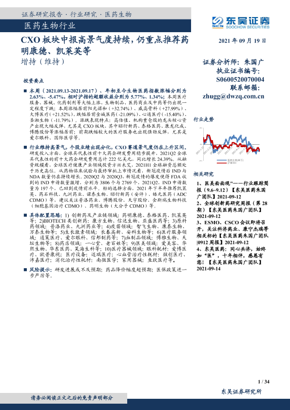 【东吴证券】【20210919】医药生物行业跟踪周报:CXO板块中报高景气度持续-34页