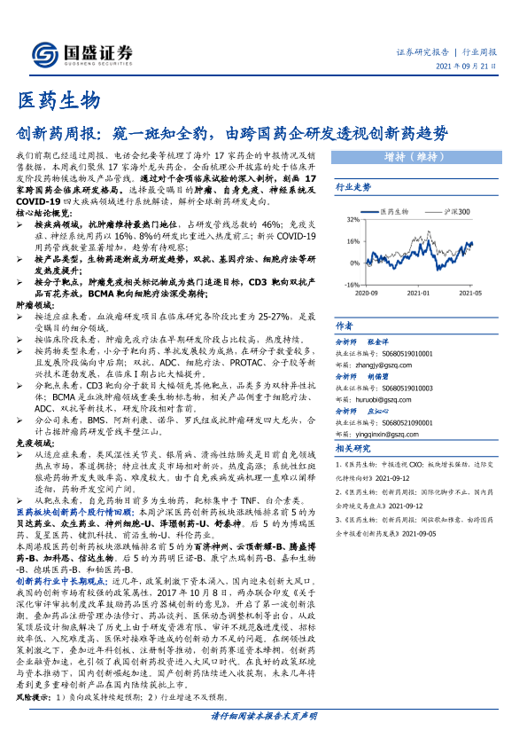 【国盛证券】【20210921】创新药周报:窥一斑知全豹,由跨国药企研发透视创新药趋势-20页