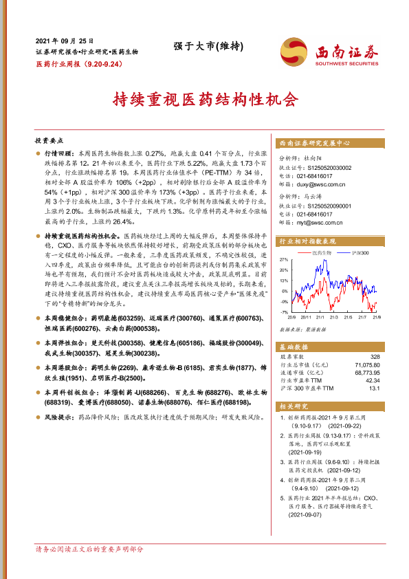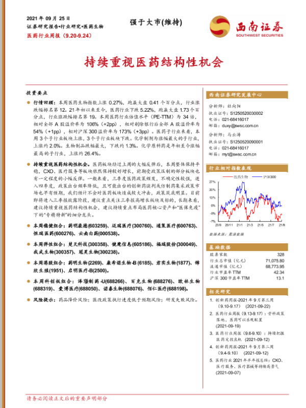 【西南证券】【20210925】医药行业周报:持续重视医药结构性机会-36页