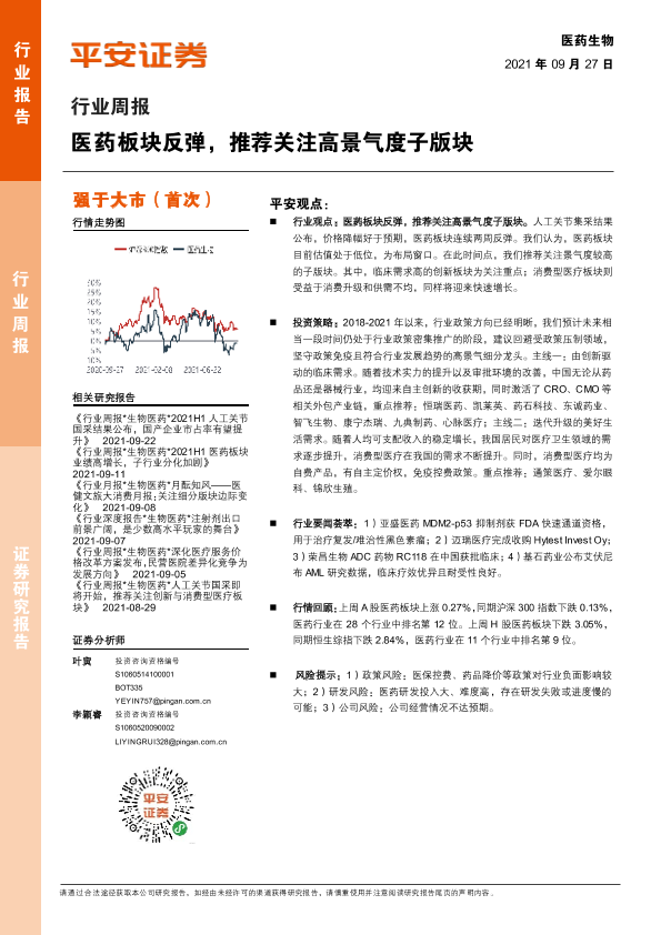 【平安证券】【20210927】医药生物行业周报:医药板块反弹,推荐关注高景气度子版块-6页