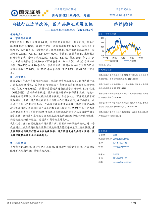 【国元证券】【20210927】内镜行业边际改善,国产品牌迎发展良机-12页