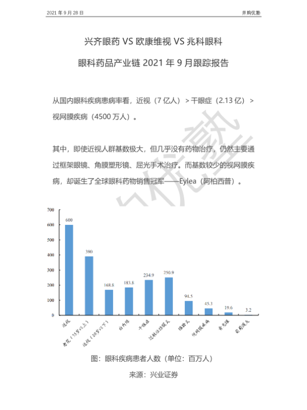 【并购优塾】【20210928】眼科药品产业链2021年9月跟踪报告:兴齐眼药VS欧康维视VS兆科眼科-19页