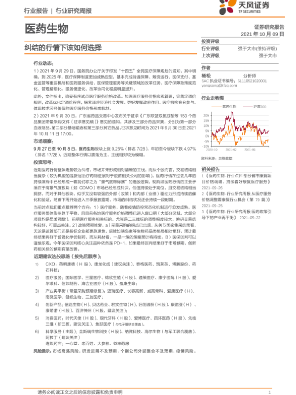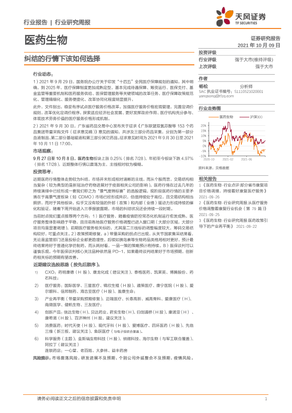 【天风证券】【20211009】医药生物行业研究周报:纠结的行情下该如何选择-4页