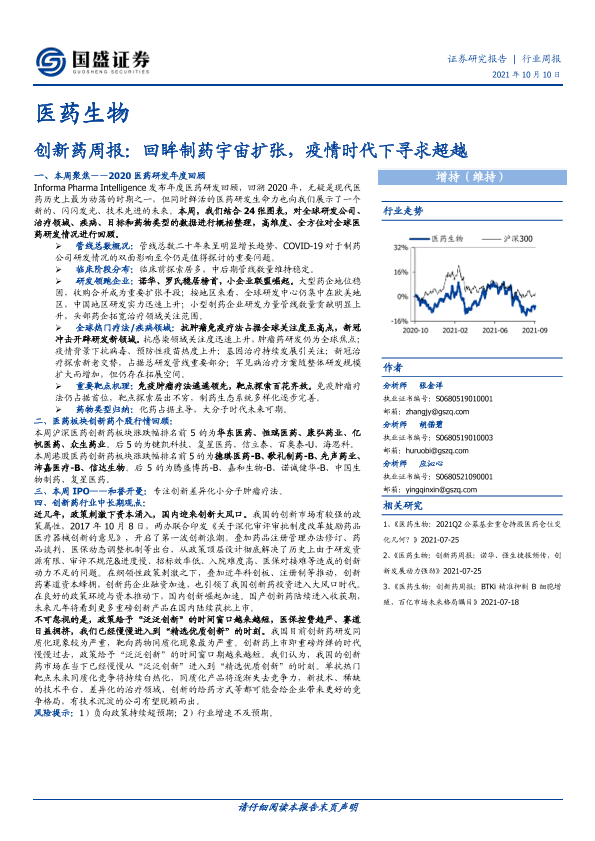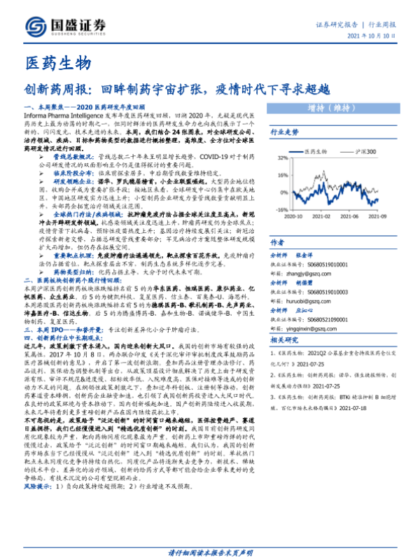 【国盛证券】【20211010】医药生物创新药周报:回眸制药宇宙扩张,疫情时代下寻求超越-22页