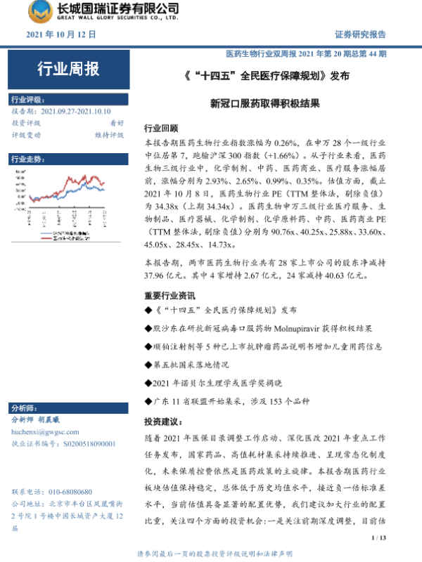 【长城国瑞证券】【20211012】'十四五'全民医疗保障规划发布 新冠口服药取得积极结果-13页