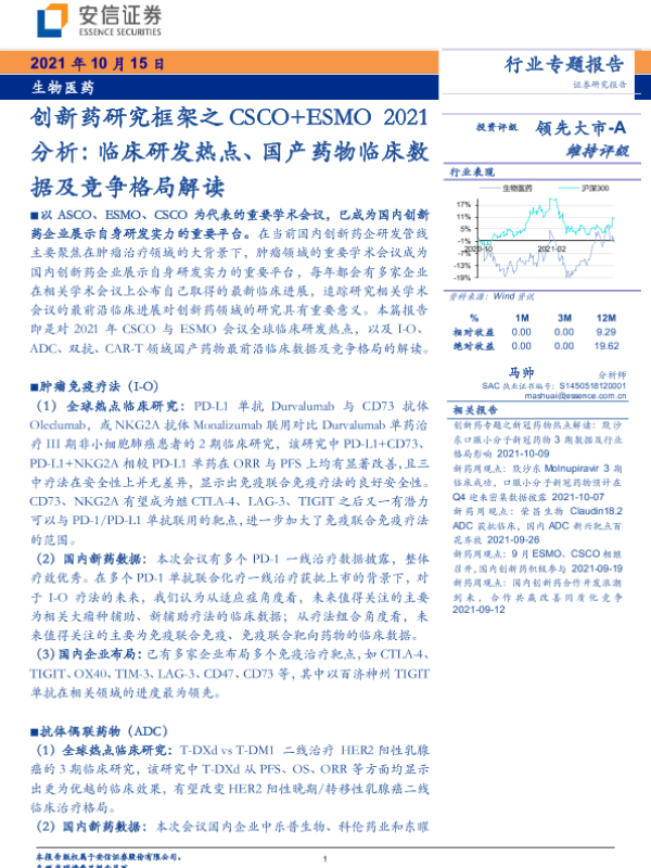 【安信证券】【20211015】创新药研究框架之CSCO+ESMO2021分析:临床研发热点、国产药物临床数据及竞争格局解读-28页