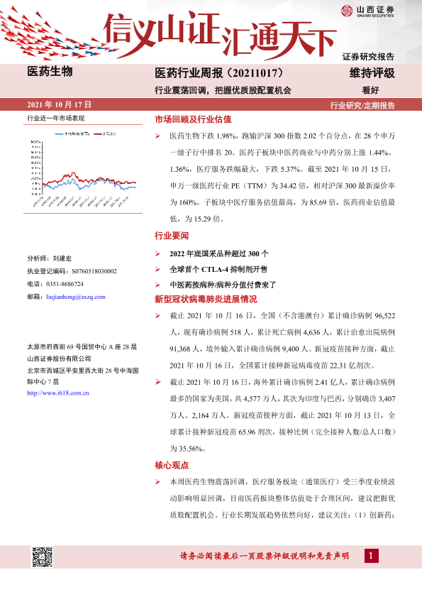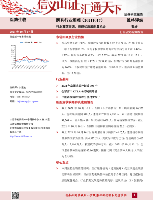 【山西证券】【20211017】医药行业周报:行业震荡回调,把握优质股配置机会-9页