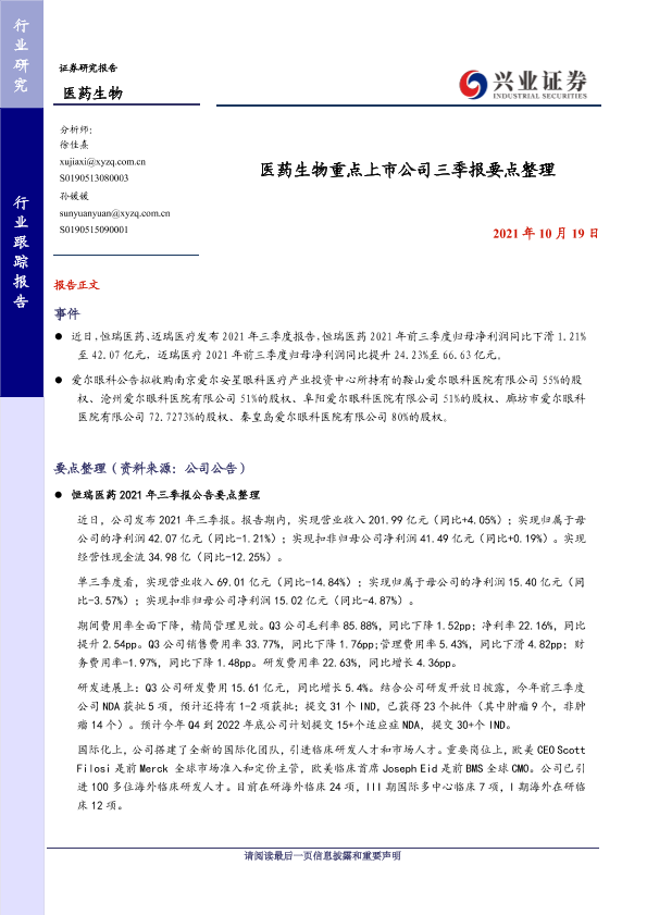 【兴业证券】【20211019】医药生物行业:医药生物重点上市公司三季报要点整理-4页