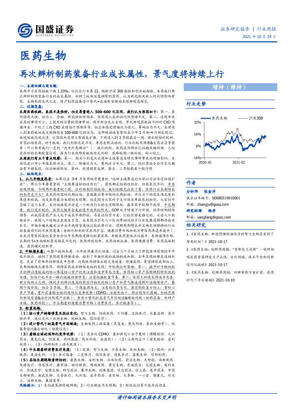 【国盛证券】【20211024】医药生物行业周报:再次辨析制药装备行业成长属性,景气度将持续上行-23页