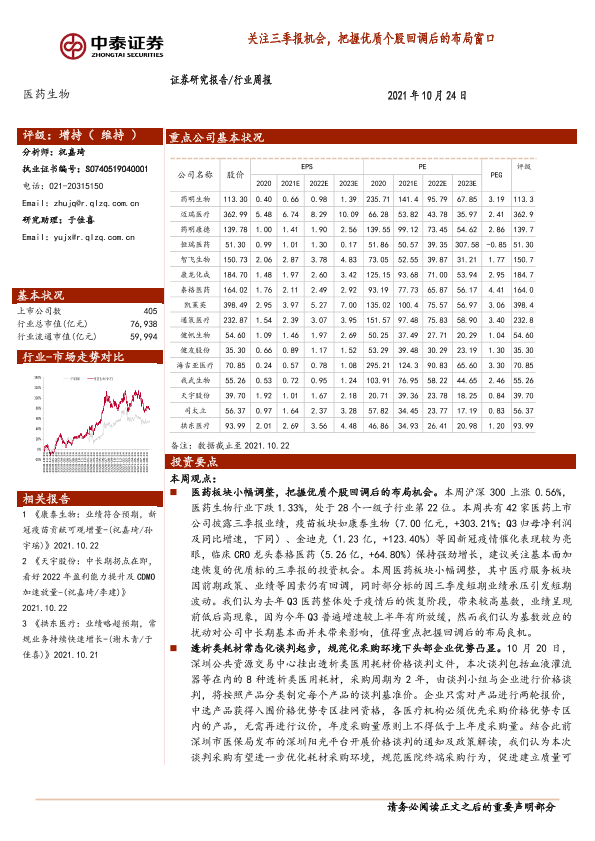 【中泰证券】【20211024】医药生物行业周报:关注三季报机会,把握优质个股回调后的布局窗口-13页