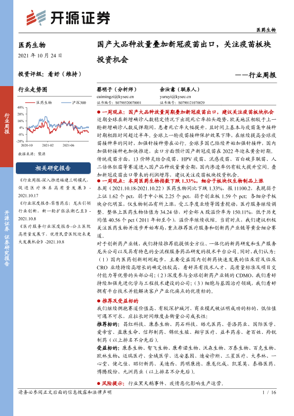 【开源证券】【20211024】国产大品种放量叠加新冠疫苗出口,关注疫苗板块投资机会-16页