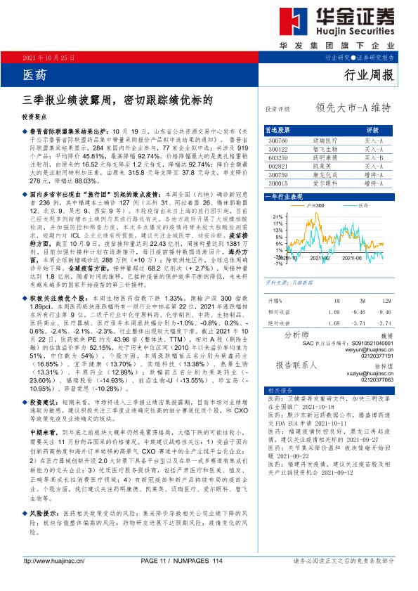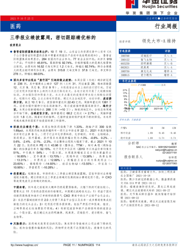 【华金证券】【20211025】医药行业周报:三季报业绩披露周,密切跟踪绩优标的-16页