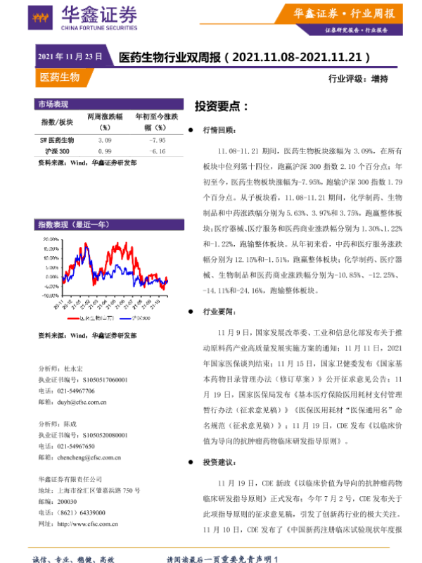 医药生物 市场表现 投资建议 政策动态 行业报告