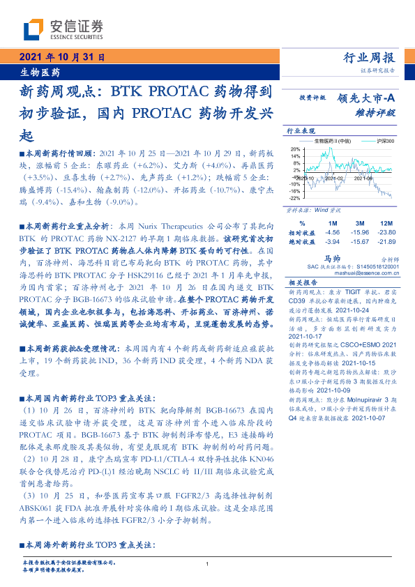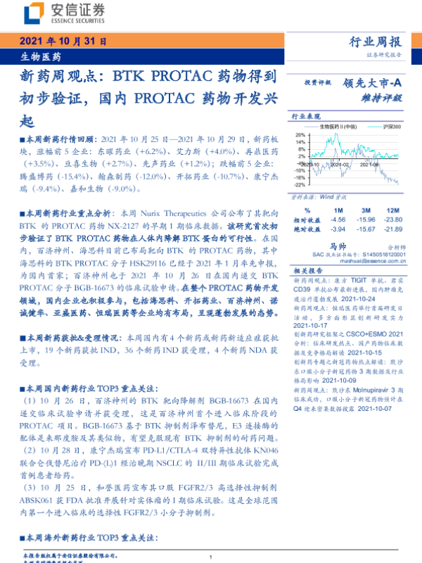 【安信证券】【20211031】BTK PROTAC药物得到初步验证,国内PROTAC药物开发兴起-14页