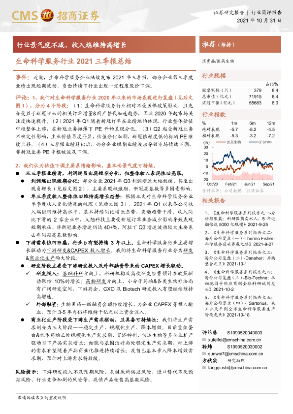 【海通证券】【20211031】生命科学服务行业2021三季报总结:行业景气度不减、收入端维持高增长-4页