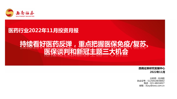 【西南证券】【20221101】医药行业2022年11月投资月报:持续看好医药反弹,重点把握医保免疫‘复苏、医保谈判和新冠主题三大机会-106页
