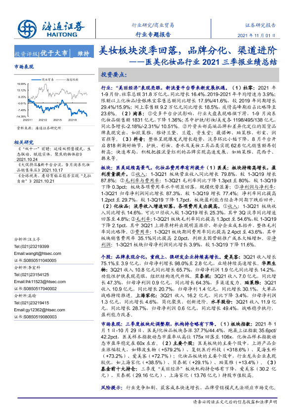 【海通证券】【20211101】医美化妆品行业2021三季报业绩总结:美妆板块淡季回落,品牌分化、渠道进阶-21页