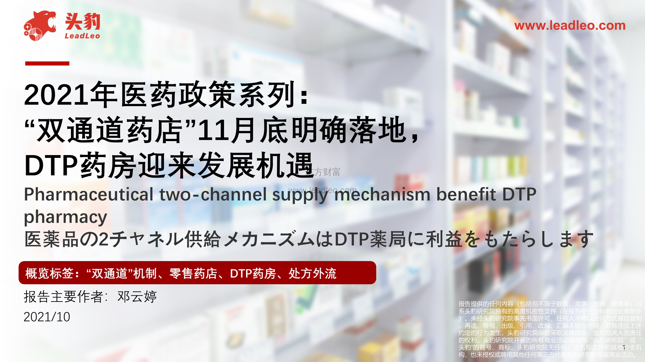 【头豹研究院】【202110】2021年医药政策系列:“双通道药店”11月底明确落地,DTP药房迎来发展机遇-30页