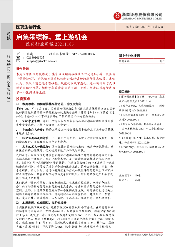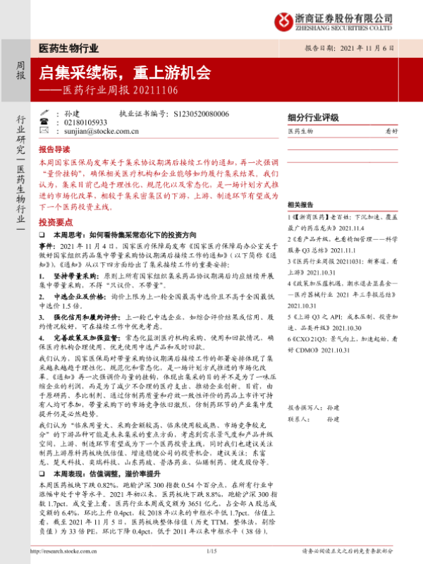 【浙商证券】【20211106】医药行业周报:启集采续标,重上游机会-15页